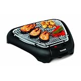 No need to give up summertime grilling when the weather turns cold thanks to this easy-to-use indoor electric grill. The countertop appliance not only sears those tasty grill marks onto food, but its design also keeps food up and away from grease, fat, and other excess liquids for healthier cooking. The removable drip tray catches run-off fat, and by filling it first with water, it's easy to enjoy virtually smoke-free cooking. Even more, the grill provides a handy "on" indicator light, two rack levels for cooking delicate foods, and an adjustable thermostat-control knob for setting the heat at the right temperature for the job, whether it's veggie burgers, shish kabobs, red peppers, or baby potatoes. When finished, the grill, base, and drip tray clean up easily by hand or in the dishwasher. The multi-purpose indoor grill measures approximately 19-2/3 by 18-1/2 by 5-1/2 inches.